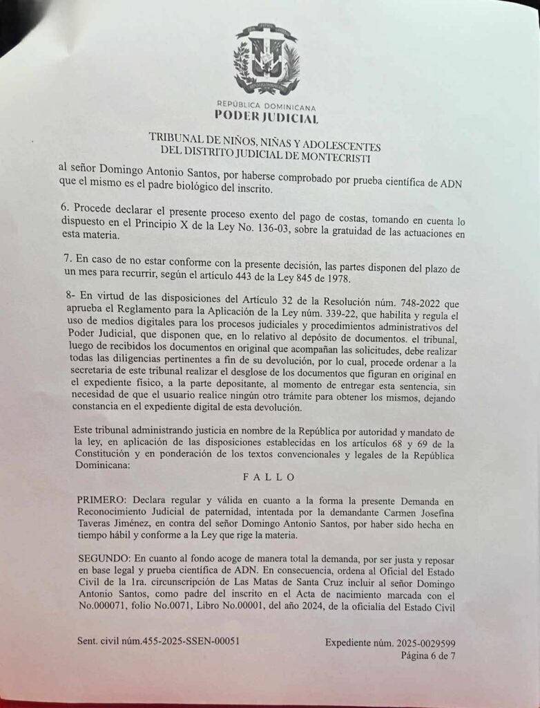 La doctora reiteró que su interés no es generar controversia mediática, sino alcanzar justicia, responsabilidad y cumplimiento legal, en apego a lo que establecen las normativas dominicanas sobre filiación y manutención infantil.